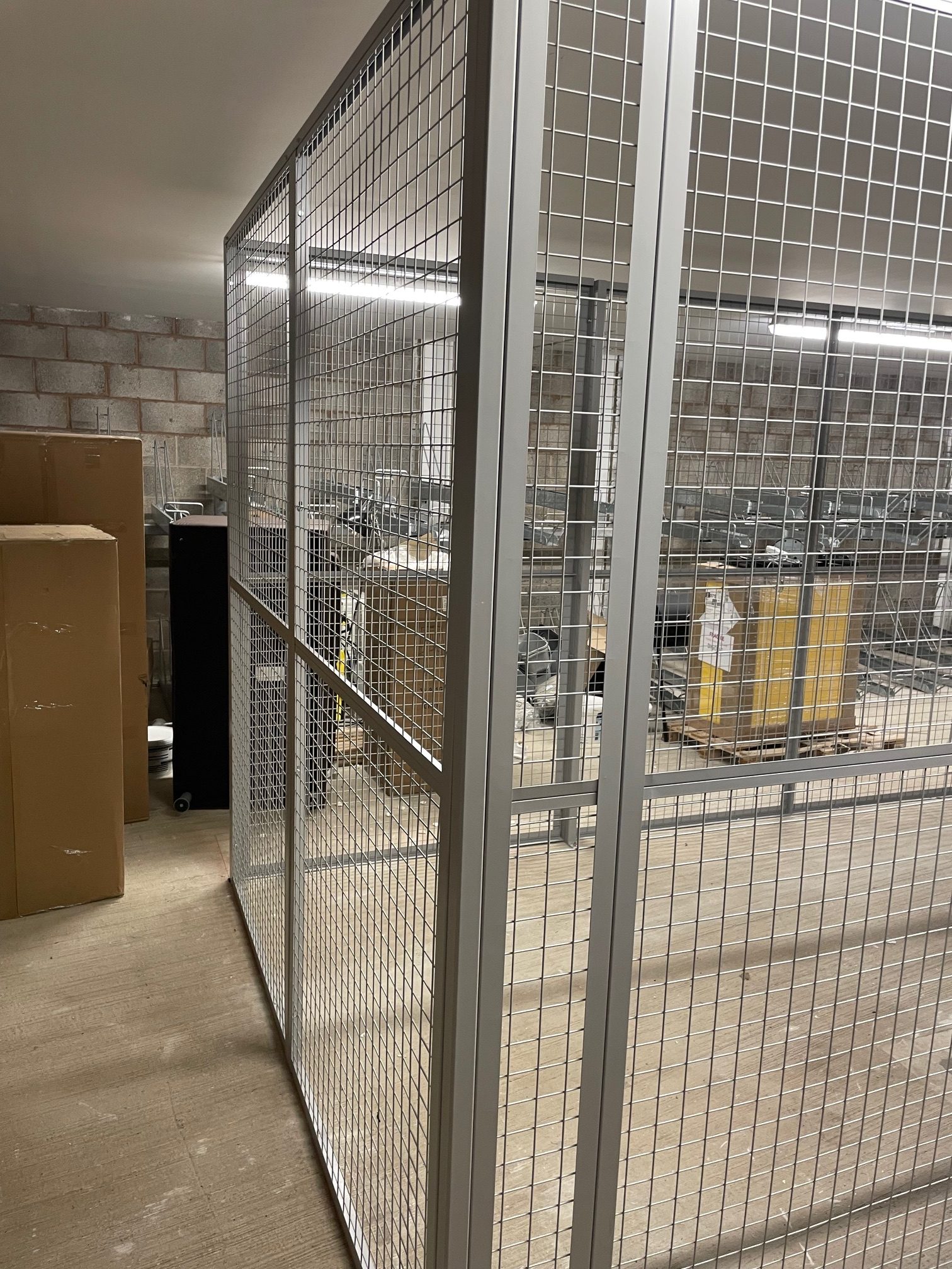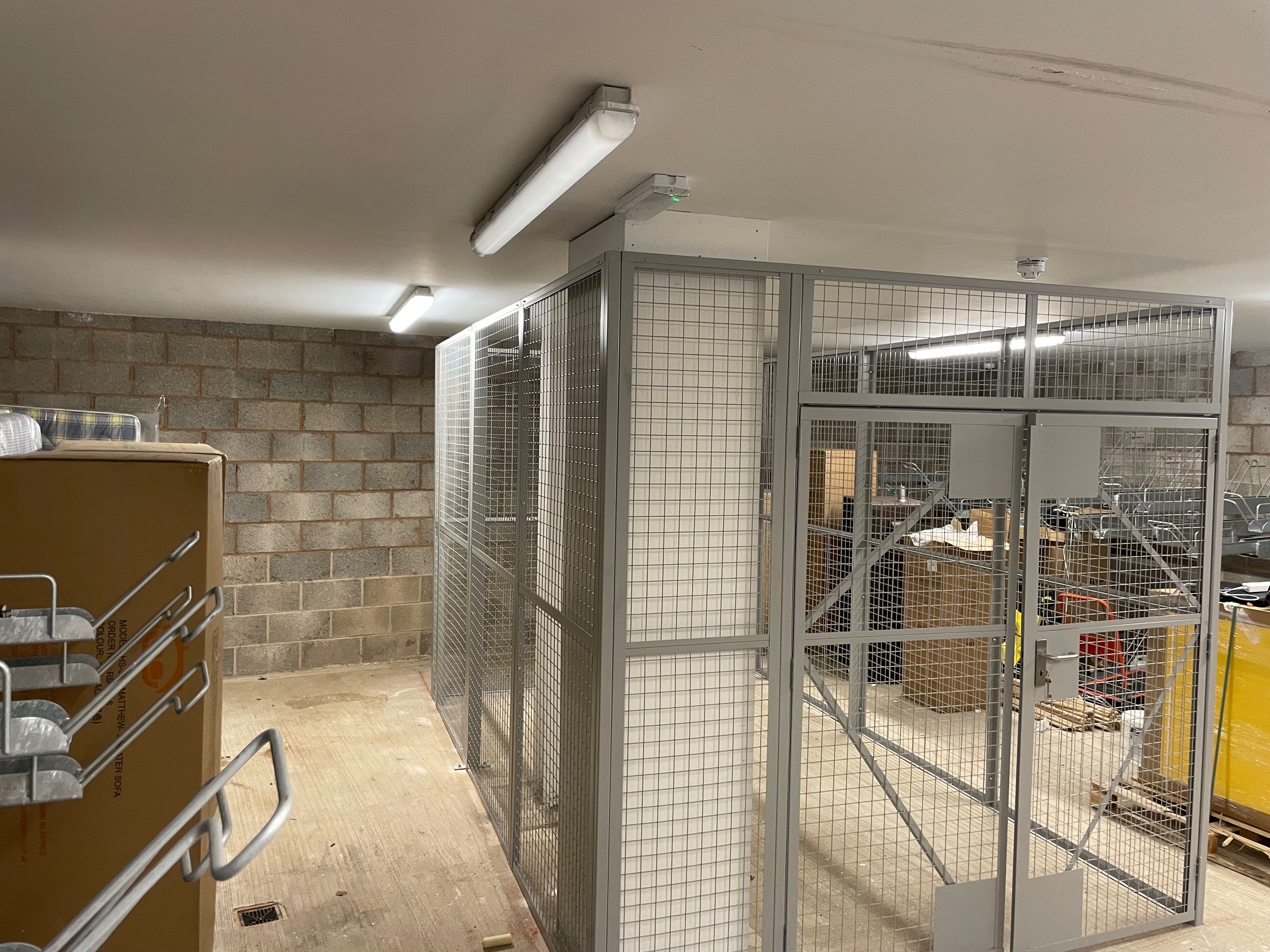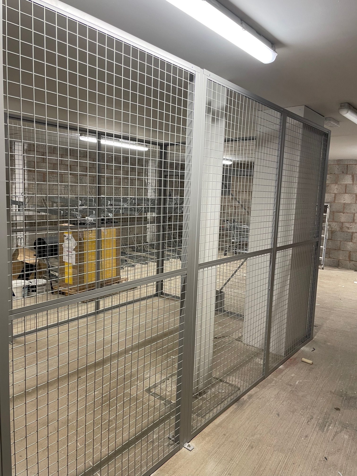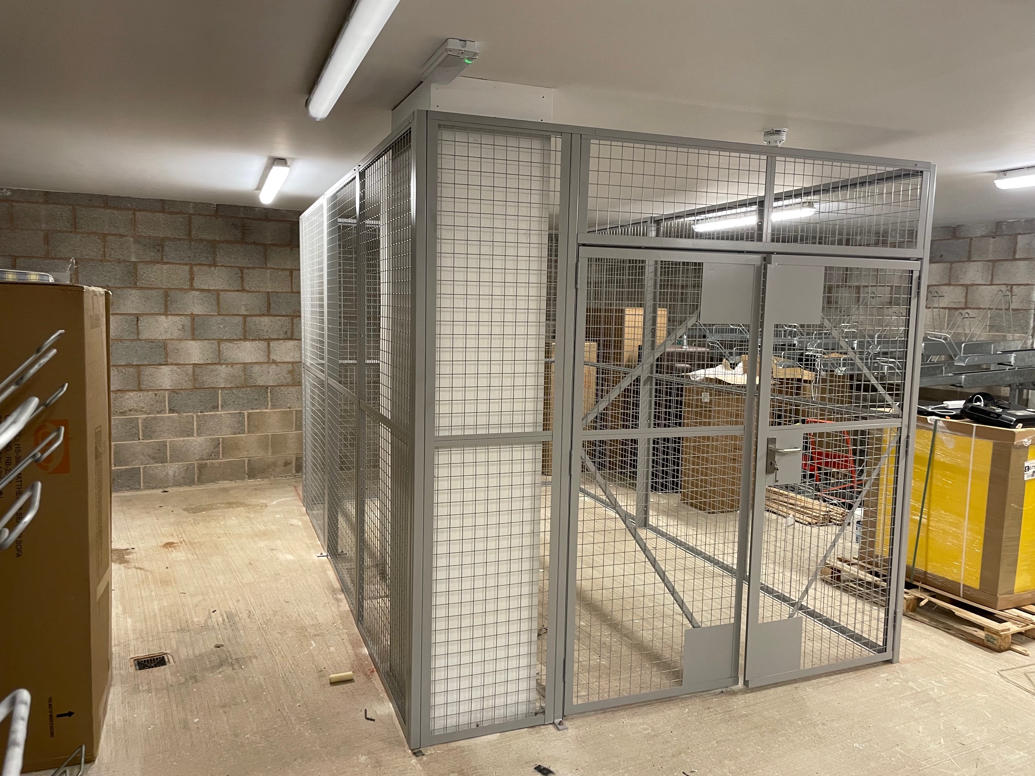 The security cage was installed with a standard 3 lever lock and 1 double door to one side, and built to go around the building columns where they will build some shelving there after. The delivery was made on the morning of the install due to the install location within the apartment block and unloading by our install team, and was installed the same day.